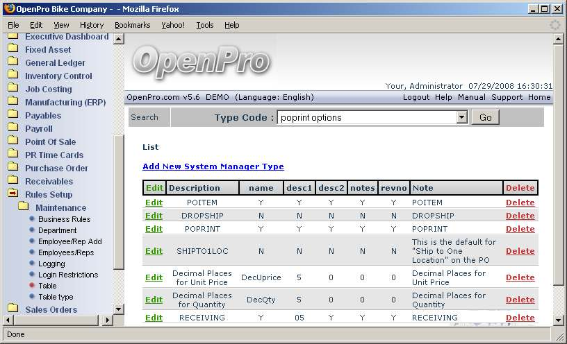 OpenPro.com accounting software is fully integrated. When OpenPro.com Purchase Order is used with OpenPro.com General Ledger, any information recorded in P/O that should be known to G/L can automatically be transferred into G/L.