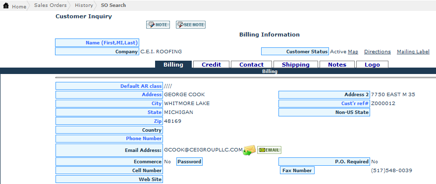 The Customer Info tab allows you to view various details regarding customers associated with different sales orders. Log In