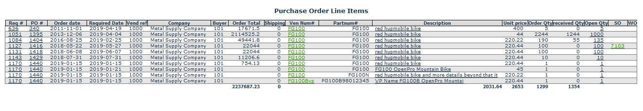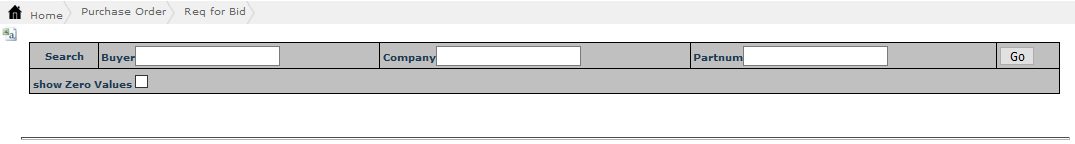 You can search for open item POs based on Buyer, Company and item part numbers. You can choose whether to view zero value items by selecting/unselecting the Show Zero Items checkbox.